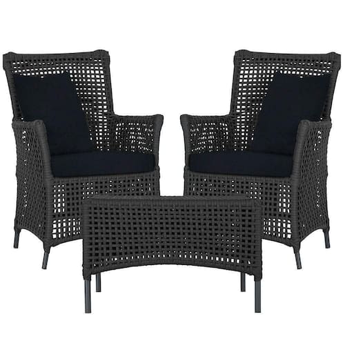 Itens Inclusos: 02 Poltronas e 01 Mesa Igapo em Aluminio Pintura Preta Corda Nautica Estofado 12