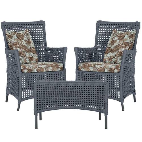 2 Poltronas E 1 Mesa Igapó Alumínio Preta Corda Náutica E6 Prata - Preto