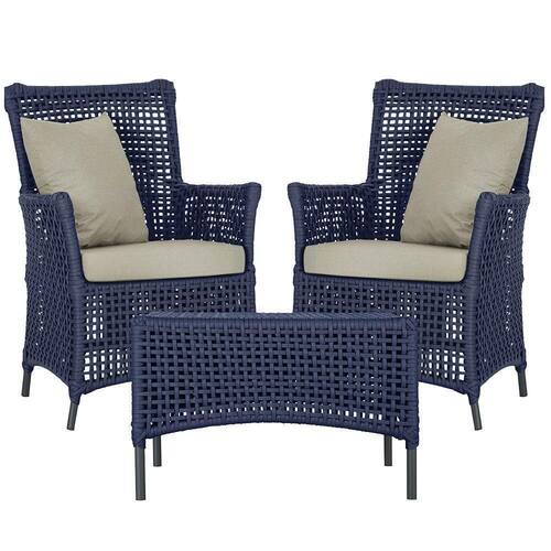 2 Poltronas E 1 Mesa Igapó Alumínio Preta Corda Náutica E7 Azul