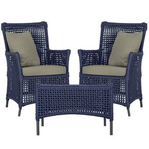 2 Poltronas E 1 Mesa Igapó Alumínio Preta Corda Náutica E8 Azul