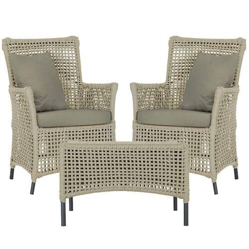 2 Poltronas E 1 Mesa Igapó Alumínio Preta Corda Náutica E8 Rami