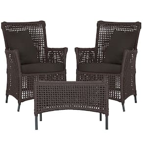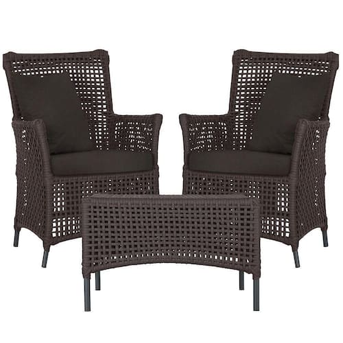 2 Poltronas E 1 Mesa Igapó Alumínio Preta Corda Náutica E9 Marrom