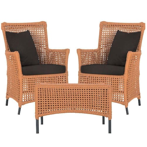 2 Poltronas E 1 Mesa Igapó Alumínio Preta Corda Náutica E9 Terra Cota