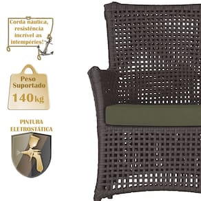 2 Poltronas e 1 Mesa Igapó em Alumínio Pintura Marrom Corda Náutica Estofado 13 - Marrom Chocolate