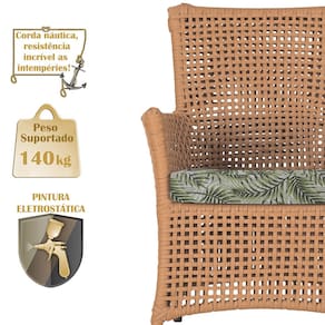 A corda náutica adiciona um toque de rusticidade moderna, enquanto o estofado impermeável garante que sua poltrona esteja sempre impecável, mesmo após uma chuva inesperada ou um acidente com líquidos.