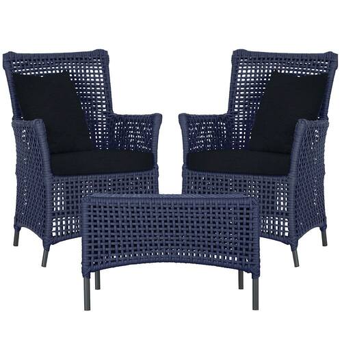 Itens Inclusos: 02 Poltronas e 01 Mesa Igapó em Alumínio Pintura Preta Corda Náutica Estofado 12
