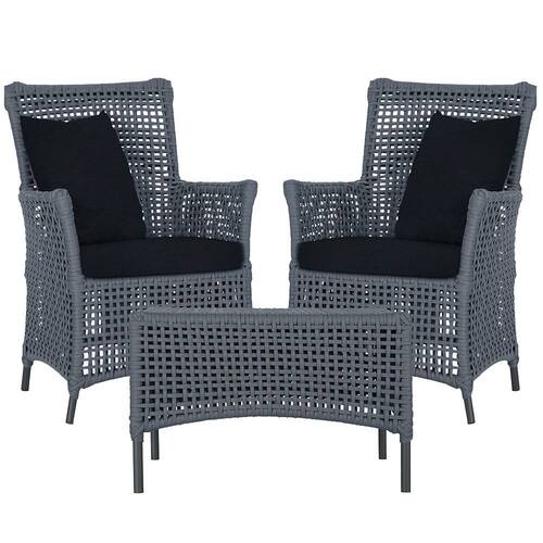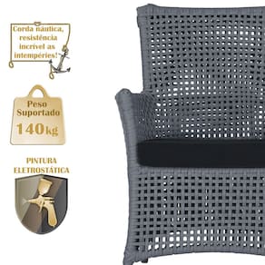 Itens Inclusos: 02 Poltronas e 01 Mesa Igapó em Alumínio Pintura Preta Corda Náutica Estofado 12