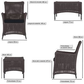 2 Poltronas e 1 Mesa Igapó em Alumínio Pintura Preta Corda Náutica Estofado 12 - Preto