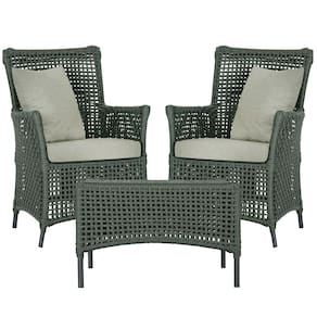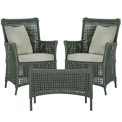 2 Poltronas e 1 Mesa Igapó em Alumínio Pintura Preta Corda Náutica Estofado 3 - Verde