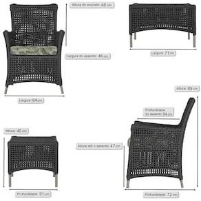 2 Poltronas e 1 Mesa Igapó em Alumínio - Preto