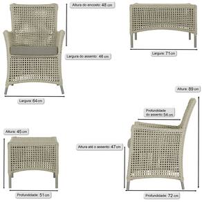 2 Poltronas e 1 Mesa Igapó em Alumínio - Bege