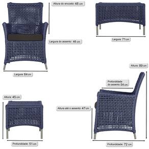 2 Poltronas e 1 Mesa Igapó em Alumínio - Azul