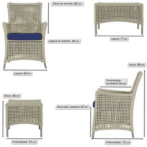 2 Poltronas e 1 Mesa Igapó em Alumínio - Bege