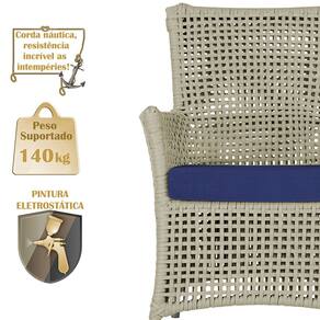 A corda náutica adiciona um toque de rusticidade moderna, enquanto o estofado impermeável garante que sua poltrona esteja sempre impecável, mesmo após uma chuva inesperada ou um acidente com líquidos.