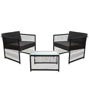 2 Poltronas com 1 Mesa de Centro Santiago em Fio de Fibra Sintética e Ferro com Pintura Eletrostática Panero Móveis.