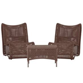 2 Poltronas E Mesa Texas Alumínio Marrom Corda Náutica Trama Marrom