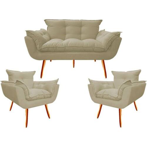2 Poltronas e Namoradeira Opala Decorativa Reforçada Suede - Bege