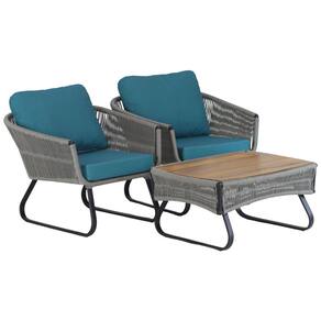 2 Poltronas Milão em Alumínio e Mesa Trama - Azul Royal