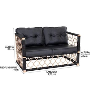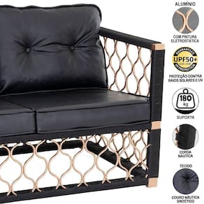 Poltronas Namoradeira em alumínio Assento Estofado Corda Náutica e pintura Cor Bronze - TRAMA