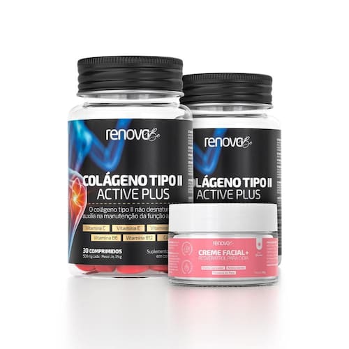 2 potes colágeno tipo 2 ossos e articulações - renova be Sabor: 2 tipo 2 + creme facial dia Composto por 2 colágenos tipo ii - cada pote contém 30 comprimidos Recomendação de uso - consumir 1 um comprimido por dia. Ingredientes - colágeno tipo 2, vitamina c, vitamina e, vitamina b1, vitamina b6, vitamina b12, cúrcuma. Estabilizantes - carbonato de cálcio, agente de massa celulose microcristalino, antimutante dióxido de silício, lubrificante estearato de magnésio. Corantes - dióxido de titânio. Revestimento - hidroxipropilmetilcelulose. Aglutinante - polietilenoglicol e cor vermelho bordeaux. Não contém glúten. Aviso legal Idade mínima recomendada: 19 anos. Consumir junto com alimentos para facilitar sua assimilação. Este produto é um suplemento dietético, não um . Suplementa dietas insuficientes. Consulte o seu médico e/ou farmacêutico. Marca: Não Informado Ean: 7898450971871