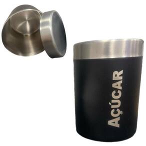 2 potes herméticos c tampa inox café e açúcar Nome do produto: 2 potes herméticos c tampa inox café e açúcar Kit de potes: acucar/cafe - 9 cm - inox/preto - ad-0302