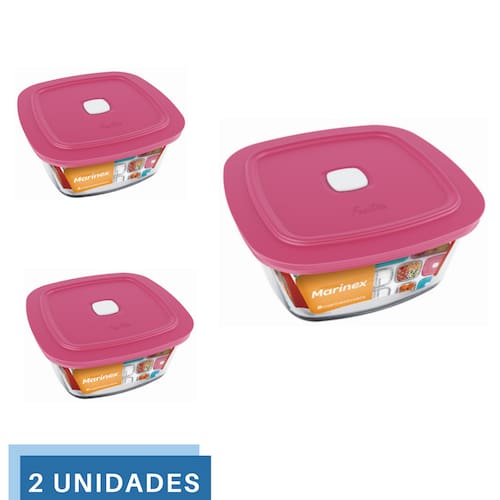 Pote De Vidro Quadrado Com Tampa Marinex 1L 2 unidades