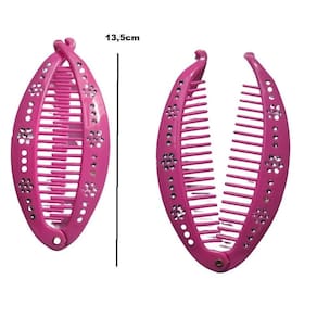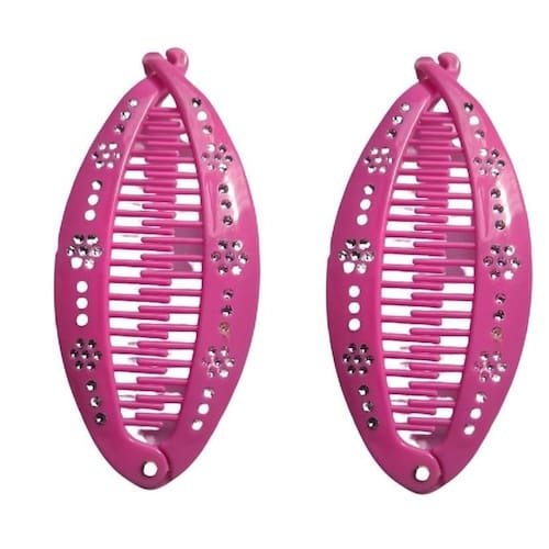 Contém: 2 unidades presilha de cabelo Rosa estilo banana pente com strass
