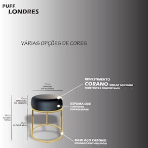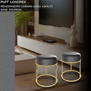 2 Puff Londres Luxo 50cm Cinza Asfalto
