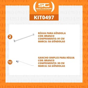 Componentes do kit:Régua de aço carbono 91cm branco para ponta de gôndola new plus sa gôndolasProduzido para gôndolas de aço da marca sa gôndolas.Produto perfeito para deixar seu comércio em um padrão único.Organização de produtos nunca foi tão fácil.Item essencial para suportar ganchos organizadores.Informações adicionais:Medida da régua: 91cm lProduzido para réguas de gôndolas de aço da marca sa gôndolas.Informações adicionais:Medida do gancho: 30cm lPerguntas frequentes:Estas réguas servem em gôndolas da marca amapá