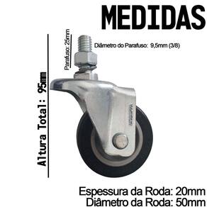 2 Rodízio Roda Espiga Parafuso Fixo Pvc sem Freio 50mm Anti Risco Flae 210 Bp - Preto