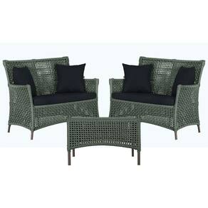 2 Sofá Área e Mesa Igapó Alumínio Pintura Marrom Corda Náutica Estofado Impermeável Almofada 12 Trama - Verde Musgo