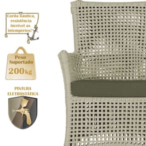 2 Sofá Área e Mesa Igapó Alumínio Pintura Marrom Corda Náutica Estofado Impermeável Almofada 13 Trama - Bege Médio