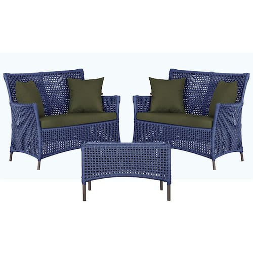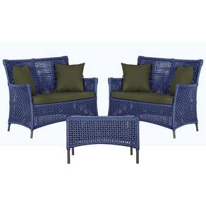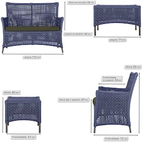 2 Sofá Área e Mesa Igapó Alumínio Pintura Marrom Corda Náutica Estofado Impermeável Almofada 13 Trama - Azul