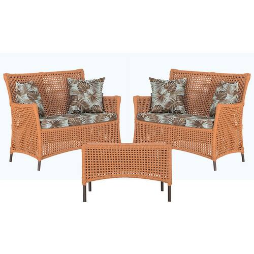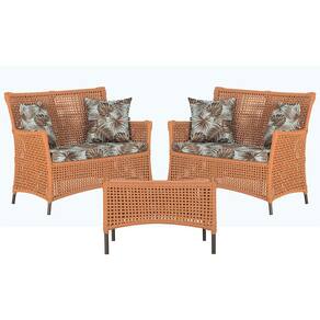 2 Sofá Área e Mesa Igapó Alumínio Pintura Marrom Corda Náutica Estofado Impermeável Almofada 6 Trama - Coral