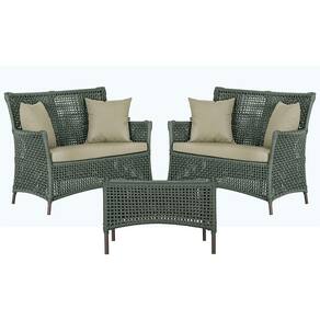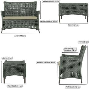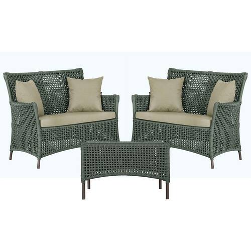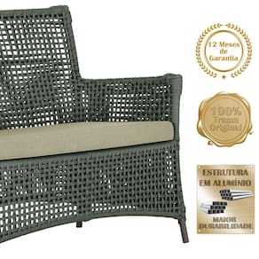 2 Sofá Área e Mesa Igapó Alumínio Pintura Marrom Corda Náutica Estofado Impermeável Almofada 7 Trama - Verde Musgo