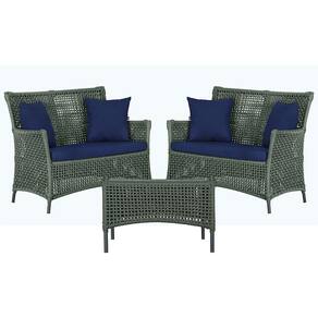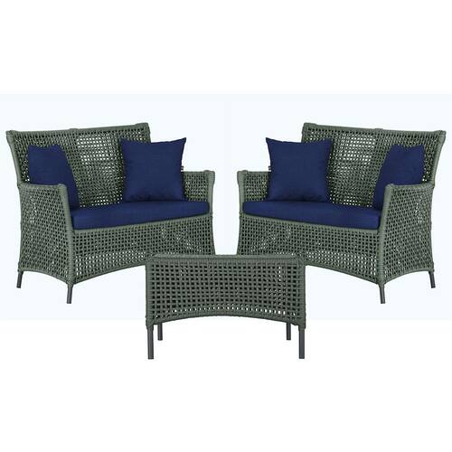 2 Sofá Área e Mesa Igapó Alumínio Pintura Preta Corda Náutica Estofado Impermeável Almofada 10 Trama - Verde Musgo