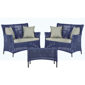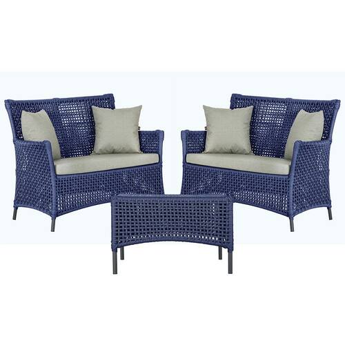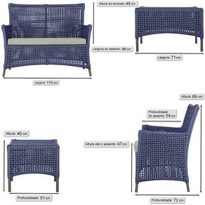 2 Sofá Área e Mesa Igapó Alumínio Pintura Preta Corda Náutica Estofado Impermeável Almofada 3 Trama - Azul