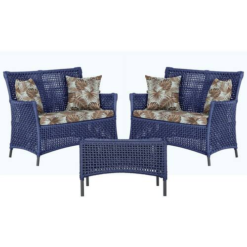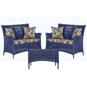 2 Sofá Área e Mesa Igapó Alumínio Pintura Preta Corda Náutica Estofado Impermeável Almofada 6 Trama - Azul