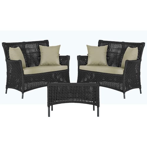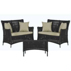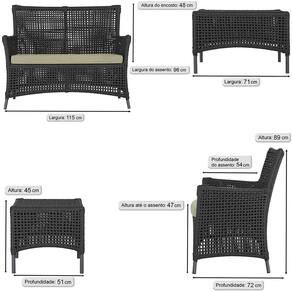 2 Sofá Área e Mesa Igapó Alumínio Pintura Preta Corda Náutica Estofado Impermeável Almofada 7 Trama - Preto