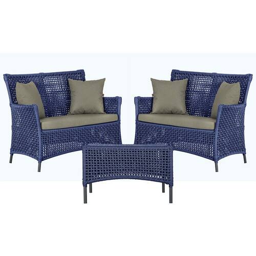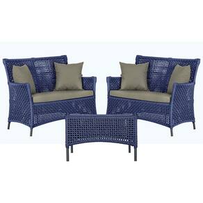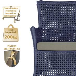 2 Sofá Área e Mesa Igapó Alumínio Pintura Preta Corda Náutica Estofado Impermeável Almofada 8 Trama - Azul