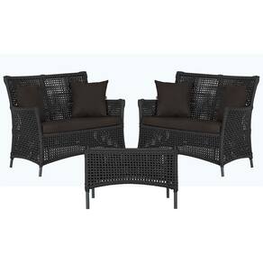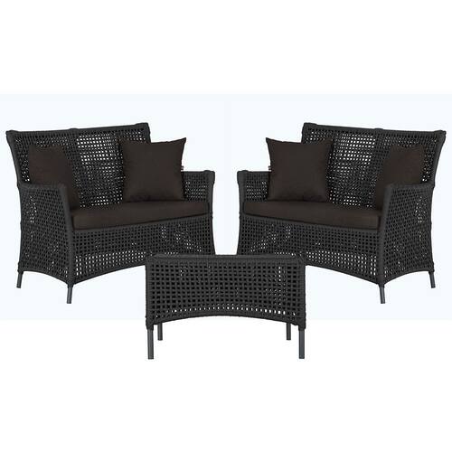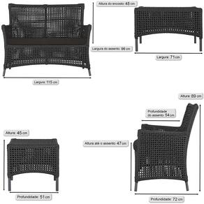 2 Sofá Área e Mesa Igapó Alumínio Pintura Preta Corda Náutica Estofado Impermeável Almofada 9 Trama - Preto