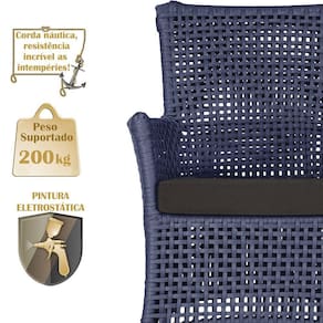 A corda nautica adiciona um toque de rusticidade moderna, enquanto o estofado impermeavel garante que sua Sofa esteja sempre impecavel, mesmo apos uma chuva inesperada ou um acidente com liquidos.