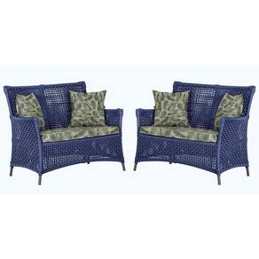 2 Sofás área Externa Igapó Alumínio Marrom Corda Náutica E5 Azul