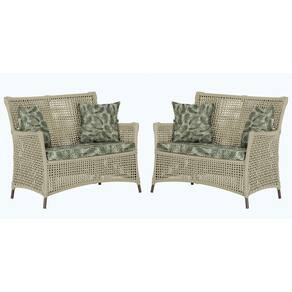 2 Sofás Área Externa Igapó Alumínio Pintura Marrom Corda Náutica Estofado Impermeável 5 - Bege Médio