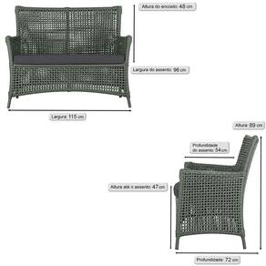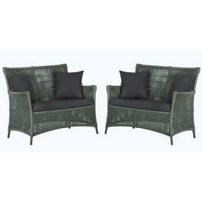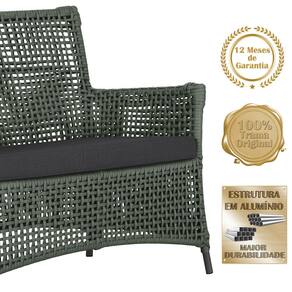 2 Sofás Área Externa Igapó Alumínio Pintura Preta Corda Náutica Estofado Impermeável 11 - Verde Musgo