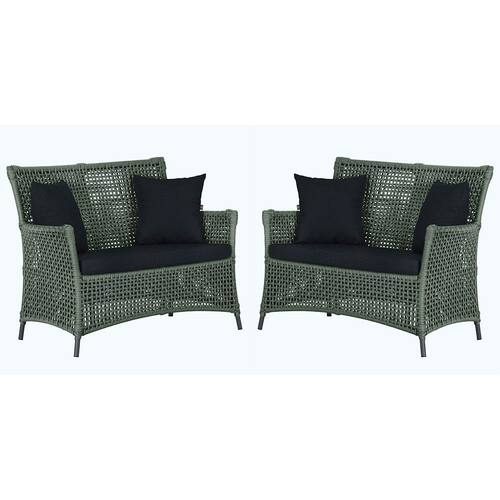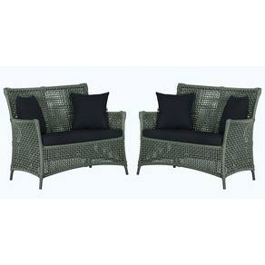 2 Sofás Área Externa Igapó Alumínio Pintura Preta Corda Náutica Estofado Impermeável 12 - Verde