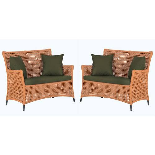 2 Sofás Área Externa Igapó Alumínio Pintura Preta Corda Náutica Estofado Impermeável 13 - Laranja