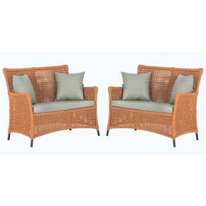 2 Sofás Área Externa Igapó Alumínio Pintura Preta Corda Náutica Estofado Impermeável 3 - Laranja
