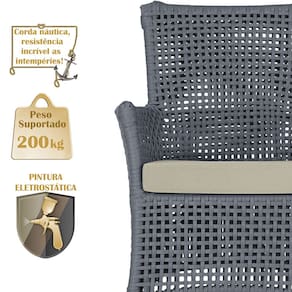 2 Sofás Área Externa Igapó Alumínio Pintura Preta Corda Náutica Estofado Impermeável 7 - Prata