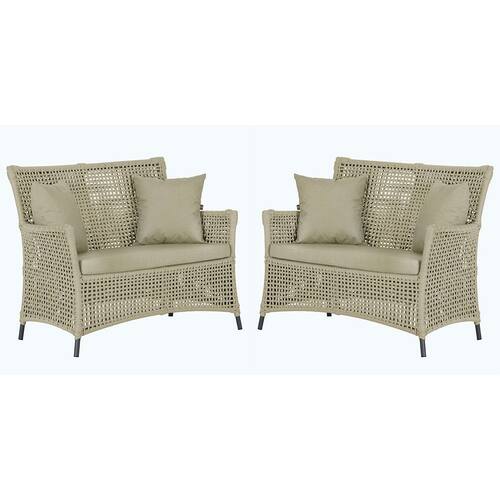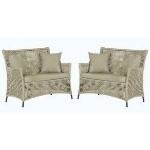 2 Sofás Área Externa Igapó Alumínio Pintura Preta Corda Náutica Estofado Impermeável 7 - Bege Médio
